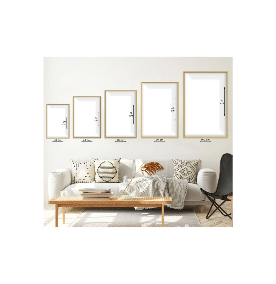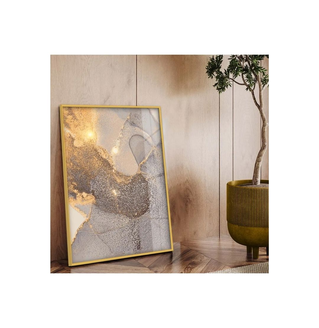Gold Metal Çerçeveli Soyut Tema Modern Çizim Kırılmaz Cam Tablo